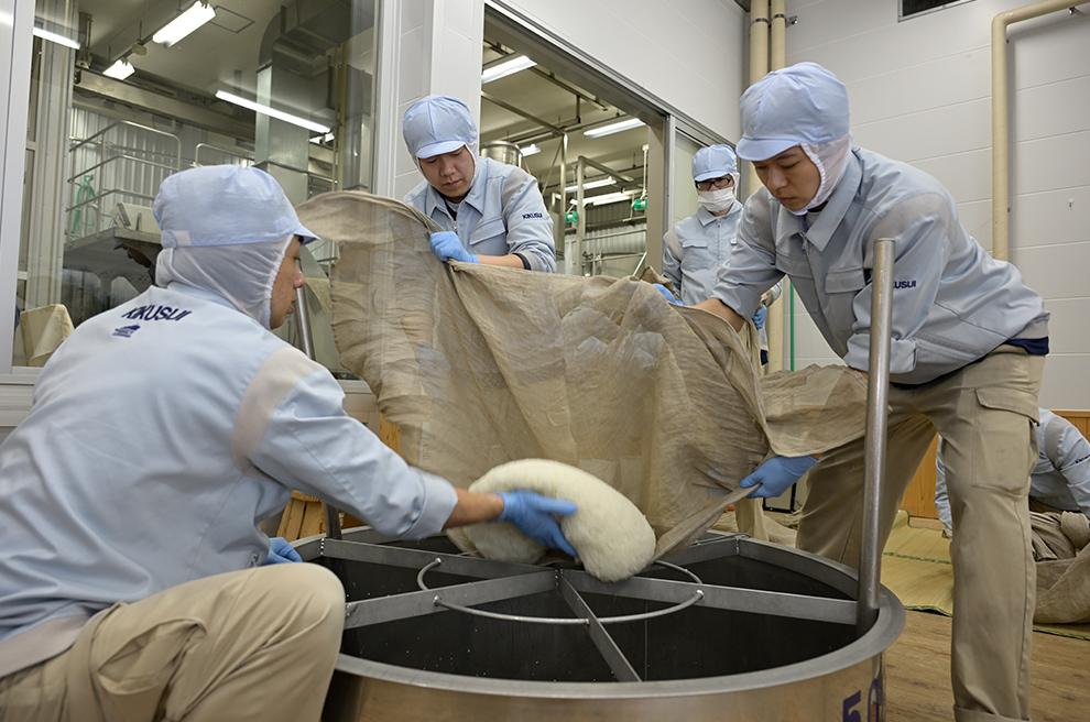 酒の出来を左右する大切な工程を、蔵人と一緒に行います。