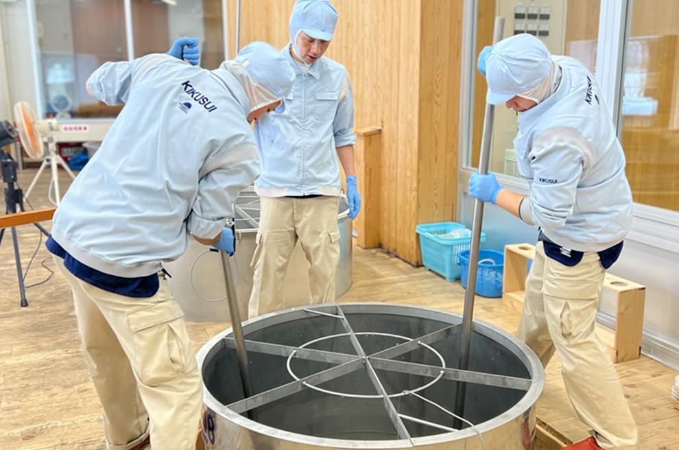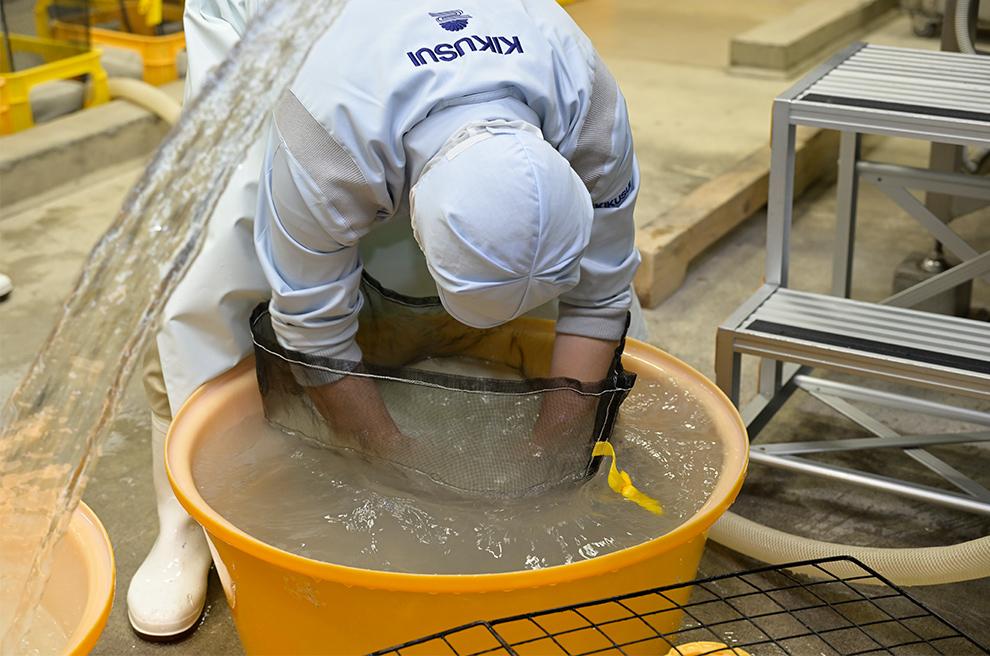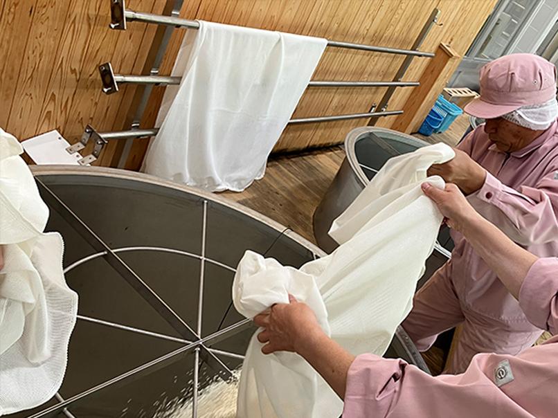 酒の出来を左右する大切な工程を、蔵人と一緒に行います。